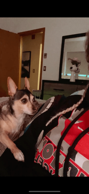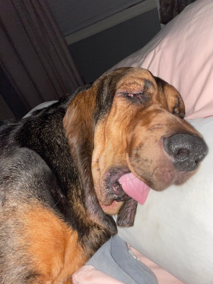 I began to feel a moment of calm. I quit crying and began breathing without stress. I have been a practicing Buddhist for over 30 years. Because I regained my breath, I began to chant. Cali’s head was on my lap. One of my sons had walked by a couple of times and told me Cali looked content lying there with me. When I started chanting Cali took her paw and laid it on my arm, she lifted her head towards my face and then she gave me two soft kisses. That is when it occurred to me the “ritual” Cali wanted was for me to chant and pray. I granted her wish and continued chanting for the darkness to go away.