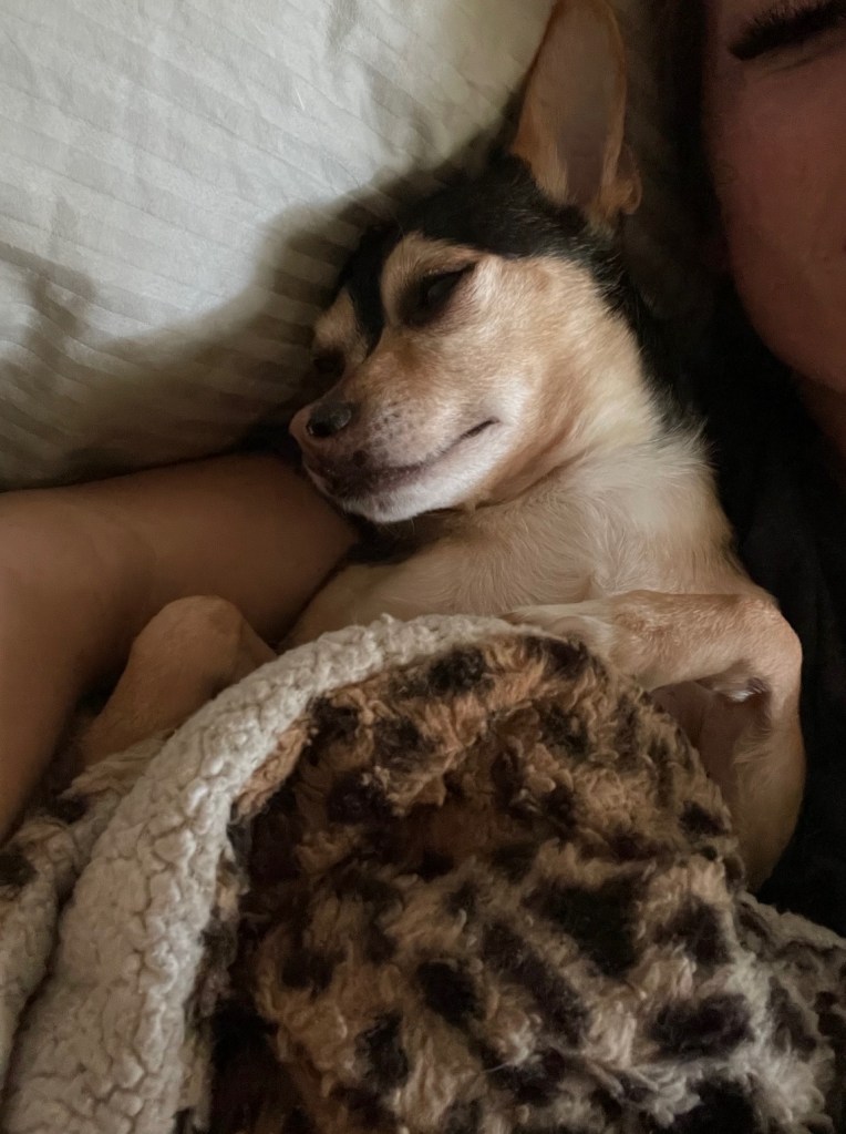 I would move Cali to wherever I thought she would be most comfortable. I cleaned her with warm washcloths and towels because I knew she didn’t want to have her fur saturated in her bile from earlier. We sat outside for a couple of hours soaking up the sun and listening to the birds. I tried to meditate but to no avail, because I couldn’t breathe. I cannot put into measure how many tears I shed as I stayed by Cali’s side. I began talking out loud to her through my tears. “Cali, I am trying so hard not to be sad. I can’t help it. I want to honor what you ask of me and release my ‘darkness.’ I’m crying because I love you and I will miss you. I will miss our walks in the park. Remember the mystical dewy warm summer rain walks when no one wanted to be outside? I will miss seeing your tail wagging as you welcome me home and the cuddles as we watch movies together. There has never been a moment of regret adopting you. I remember how beautiful you were when I first met you with your goat milk potbelly, soft fur, and puppy breath. Today you are just as beautiful. Having you by my side brings me comfort. You are the best dog ever!” A million times I thanked her for being in our lives.